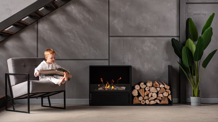 Біокамін Neverdark Mosswood – унікальний камін без димаря з об’ємним пальником.