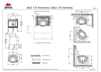 Камера згоряння в топці виконана з сірого чавуну. Камін Jotul I 18 Harmony відповідає вимогам Еко-проекту (Eko-design). Завдяки своїм розмірам дозволяє закладати ту кількість дров, яка необхідна для обігріву приміщення площею до 200 м.кв.