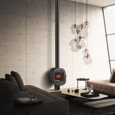 - Камін Rocal Oval , один з найбільш доступних і компактних камінів Rocal. Як і всі моделі, він базується на геометричних заокруглених формах.