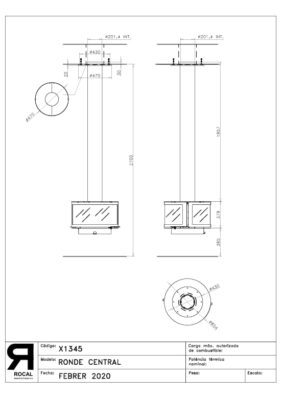 RONDE CENTRAL – Камін з круглої форми і видом на вогонь з будь-якої точки приміщення. З можливістю вішання, зі спеціальною закінченням для бетонної стелі (система, подібна до моделі Born). Якщо підлога до стелі перевищує 3 метри, ми рекомендуємо встановити натяжні розтяжки.