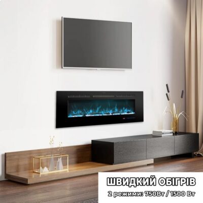 Для більшого комфорту в електрокамінах реалізовано функцію примусового дворівневого обігріву – 0,75 та 1,5 кВт. Гаряче повітря виходить із передньої частини каміна через отвори, розташовані зверху. Чутливий термостат здійснює контроль заданої температури обігріву з граничною точністю, реагуючи на мінімальні зміни температури повітря.