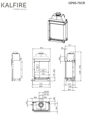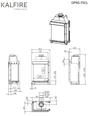 Kalfire GP 65 / 75C це камін з кутовим склом, ширина фронтального 65 см, ширина бокового 31,7 см, а висота 75 см. Є можливість замовити як правобічний камін, так і лівобічний. Вогонь в газовому каміні Kalfire GP 65 / 75C виглядає реалістично і не відрізняється від каміна на дровах.