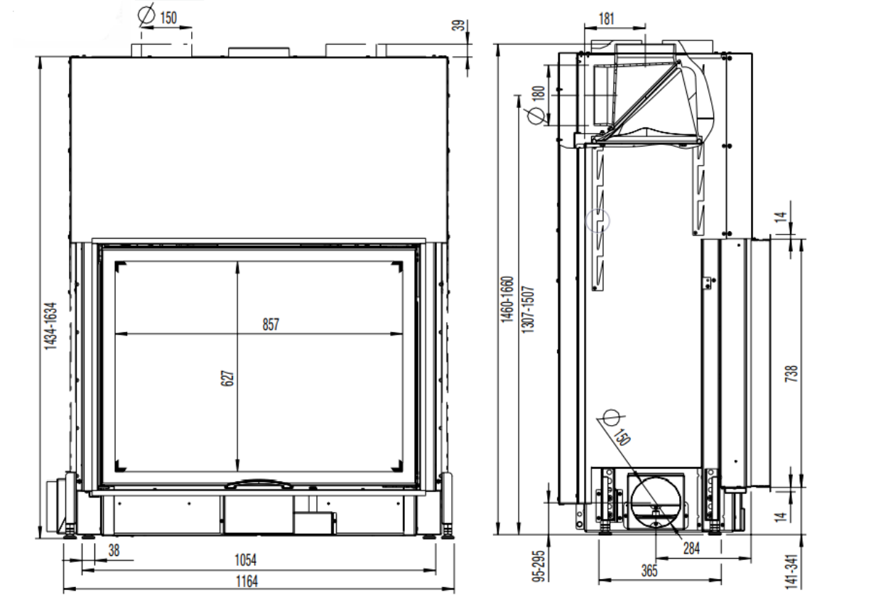| Діаметр димоходу | 180мм |