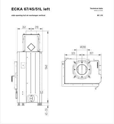 - У топці Hoxter ECKA 67/45/51 завжди чисте скло (завдяки системі «чисте скло», яка подає повітря зверху на скло в співвідношенні 80% і 20% знизу)