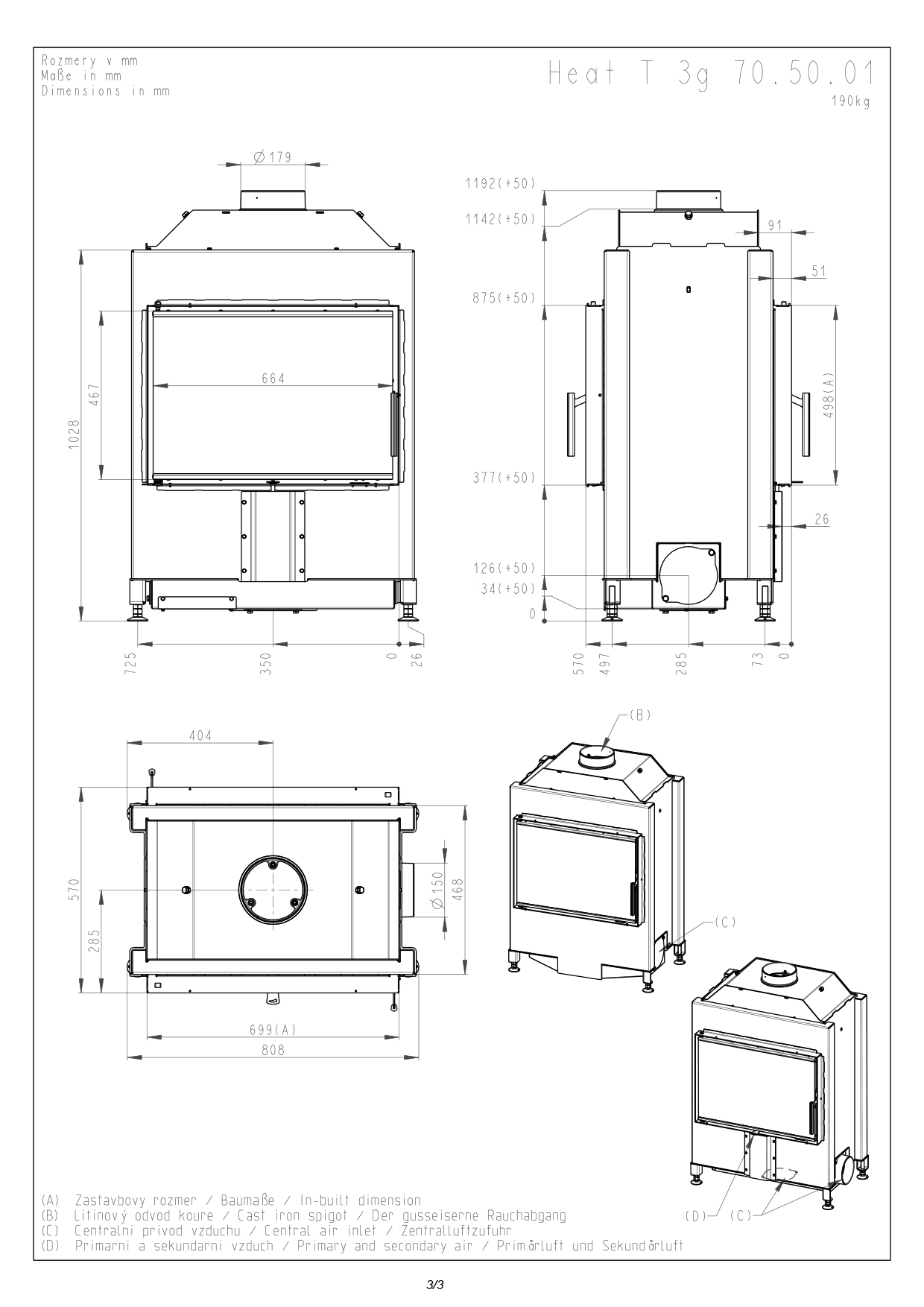 - Змінні ніжки 190 мм для регулювання висоти камінних топок