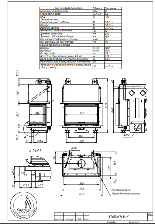 Gavryliv&Sons 37×80x37x54 потужний камін, призначений для обігріву вашого будинку. Ви отримуєте продукт, призначений для роботи як з конвекційними, так і з системами акумуляції