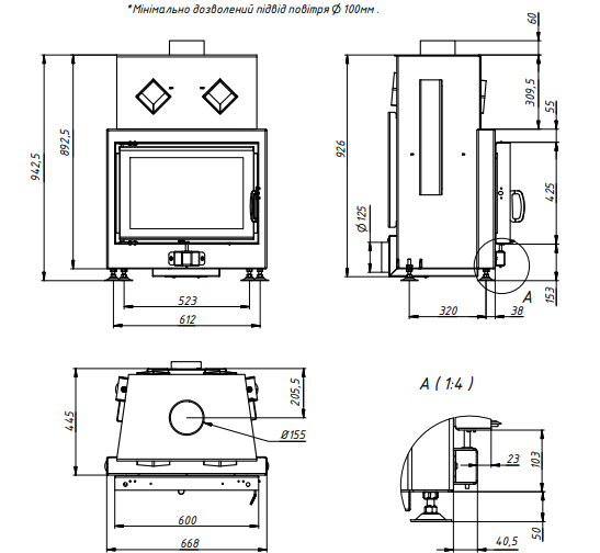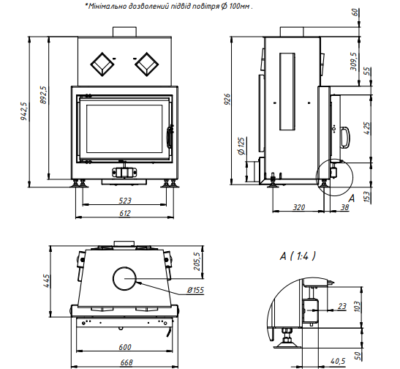 | Діаметр димоходу | 150 мм |