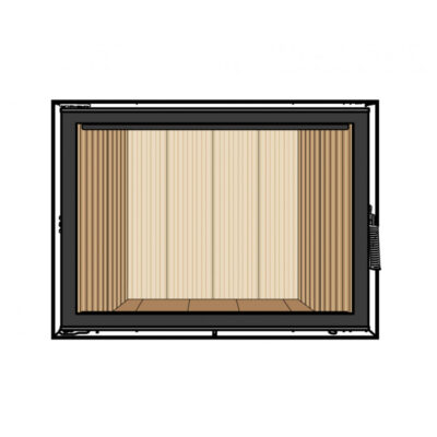 Зсередини дверцята мають спеціальний молдинг з нержавіючої сталі. Це дуже естетичне рішення, з яким камін виглядає виразно та завершено. Естетика не є єдиною функцією такого молдингу: завдяки хорошому екрануванню, дверний профіль менше нагрівається, а жар, що випадково розсипається за межі топочної, скочується назад. Оскільки рух повіря для чистого скла здійснюється по напрямку згори донизу, то молдинг згладжує його рух і запобігає задимленню скла у нижній частині.