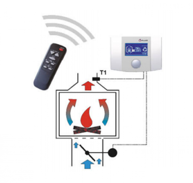 Контролер конвекційних систем– це сучасний електронний пристрій, що використовується для регулювання процесу горіння в конвекційних камінах. Здійснює процес розпалення деревини у топці. Він підтримує температуру вихідних димових газів на встановленому рівні (параметр встановлюється відповідно до рекомендацій виробника камінних топок чи печей). Регуляція здійснюється за рахунок контролю подачі повітря до камери горіння каміна.