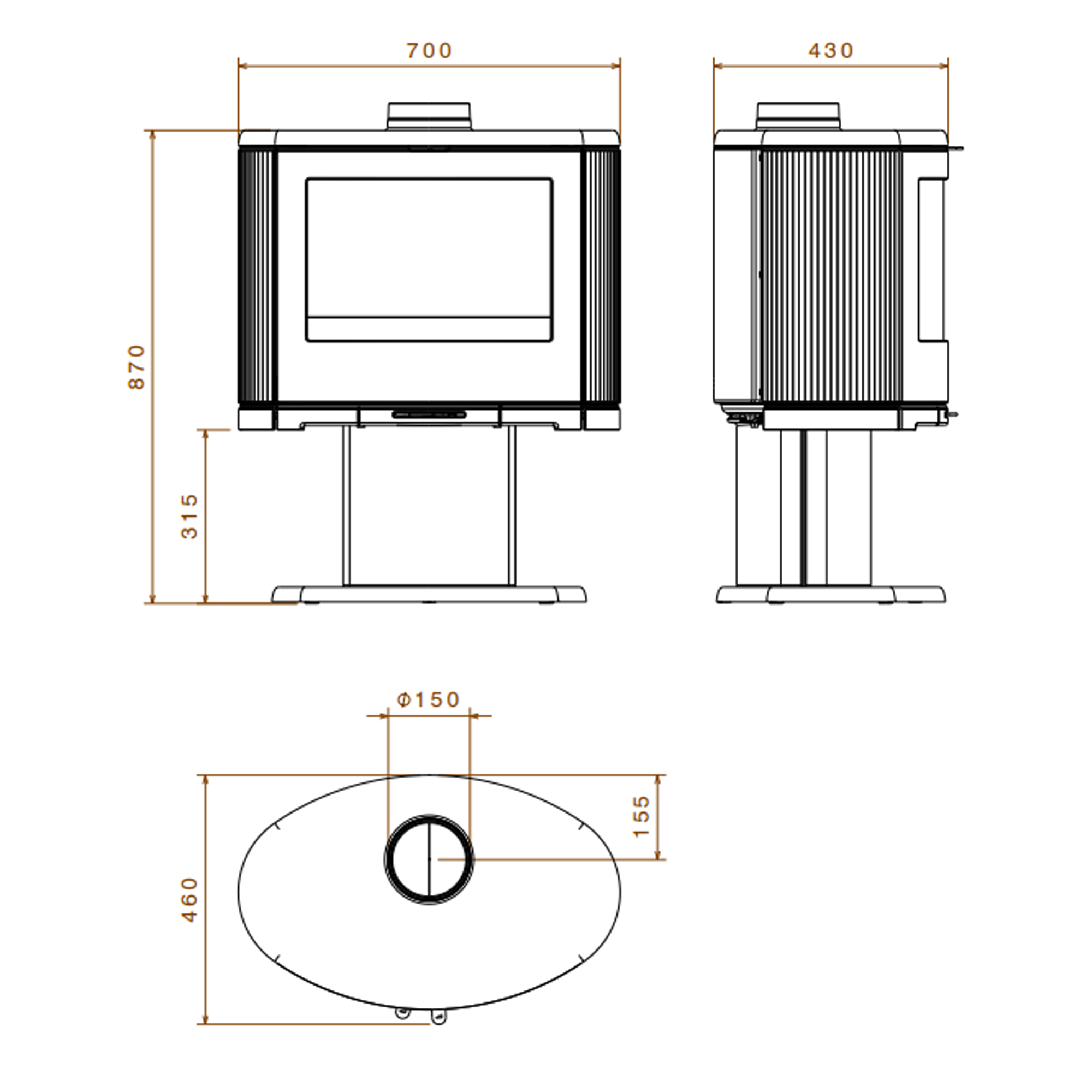 | Діаметр димоходу | 150 мм |