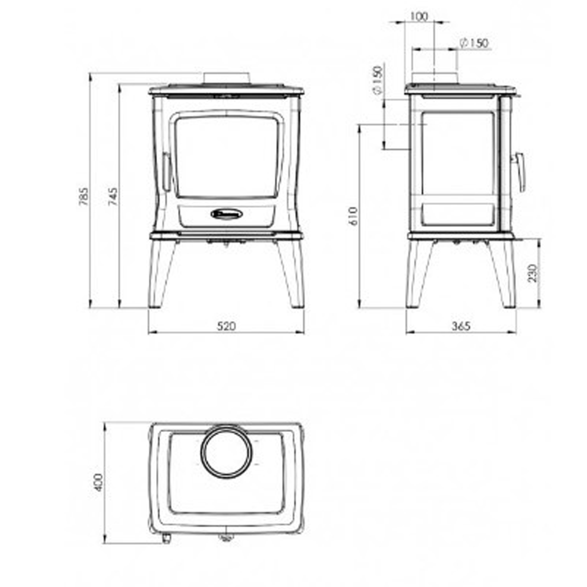 | Діаметр димоходу | 150 мм |