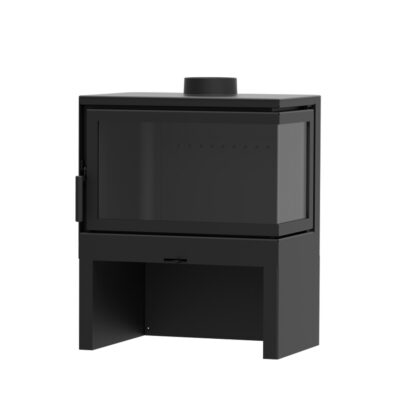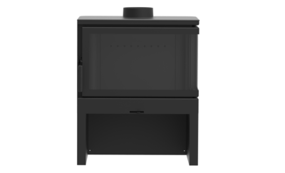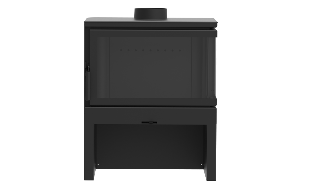 KFD STO M 14 L/R – це чавунна піч-камін з лівим або правим боковим склом на підставці дровниці, дверцята відкриваються в сторону. Бокове скло печі забезпечує більший кут огляду горіння вогню.