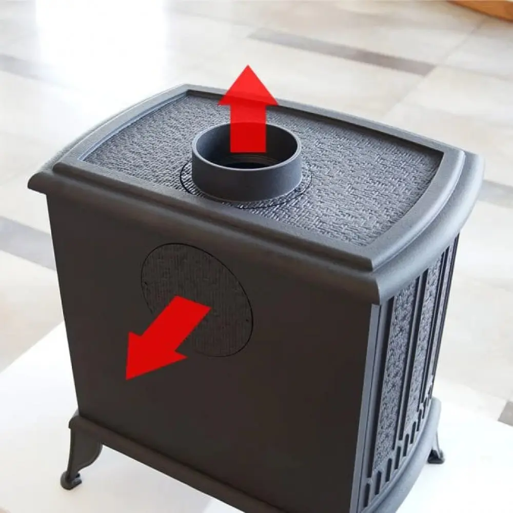 Може використовуватися в різних умовах монтажу завдяки регульованому димохідному отвору: на задній або верхній частині печі.