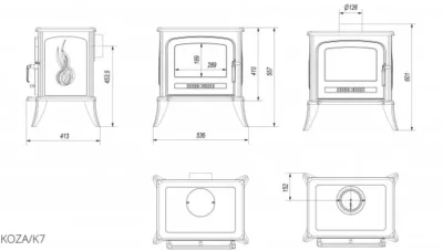 Чавунна піч-камін Kratki KOZA K7 (5,0 кВт)