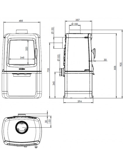 | Діаметр димоходу | 150 мм |