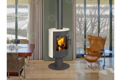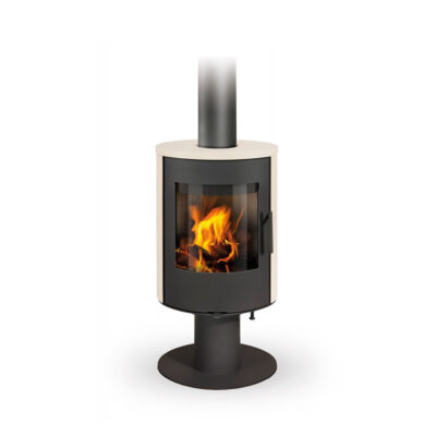 Стальна піч чеського виробника Romotop – EVORA T 01 на ніжці, з можливістю обертання камери горіння навколо своєї осі на 360 градусів. Піч Romotop має сучасний та стильний дизайн, тому чудово впишеться у будь-який інтер’єр Вашого будинку. Естетичного вигляду печі надають верхня і бокові накладки з кераміки. Піч Romotop Evora T 01 доповнена жаростійким панорамним склом, що робить її надзвичайно стильною та елегантною. Завдяки вторинній подачі повітря скло дверей омивається потоком повітря, що запобігає накопиченню кіптяви.