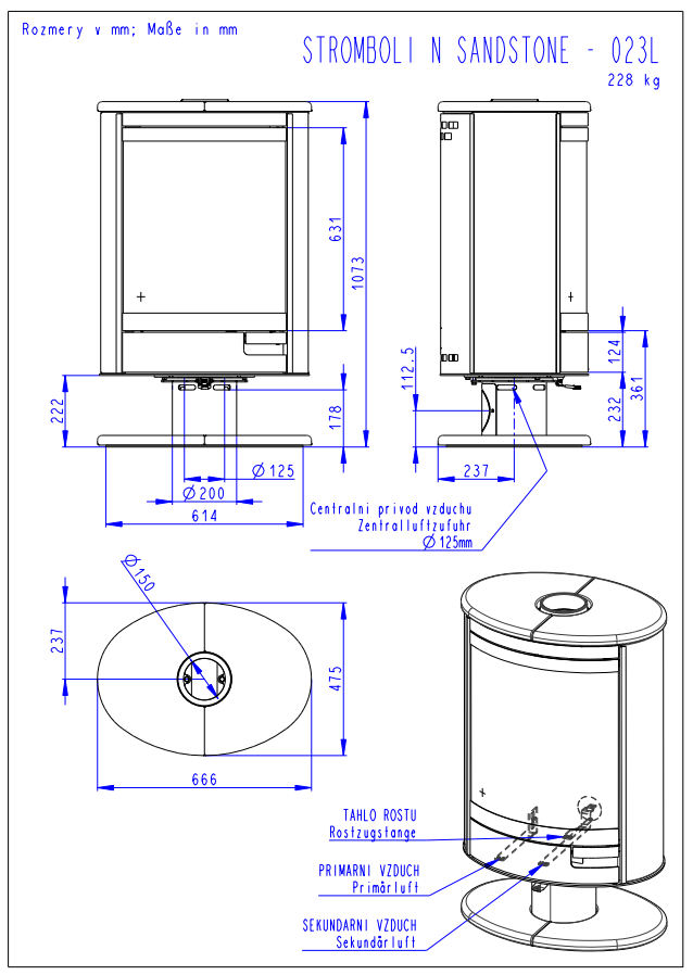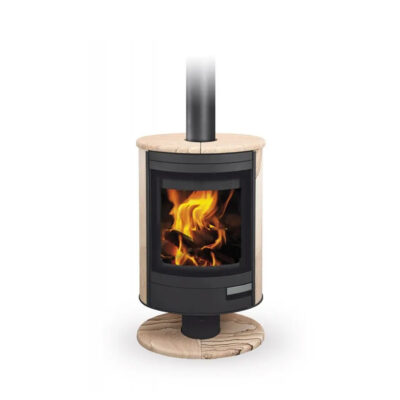 Стальна піч чеського виробника Romotop – STROMBOLI N 04 на ніжці, з можливістю обертання камери горіння навколо своєї осі на 360 градусів. Піч Romotop має сучасний та стильний дизайн, тому чудово впишеться у будь-який інтер’єр Вашого будинку. Естетичного вигляду печі надають накладки з піщаника. Піч – камін Romotop STROMBOLI N 04 доповнена жаростійким панорамним склом, що робить її надзвичайно стильною та елегантною. Завдяки вторинній подачі повітря скло дверей омивається потоком повітря, що запобігає накопиченню кіптяви.