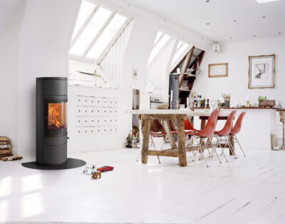 Scan 83-1 – це циліндрична піч з великим склом, яке створює ідеальний вид на полум’я. Відмінною особливістю печей Scan 83 є те, що ручка дверцят і вентиля регулювання подачі повітря виконані з алюмінію і знаходяться поза зоною нагріву. Таким чином ручка дверей завжди буде прохолодною.